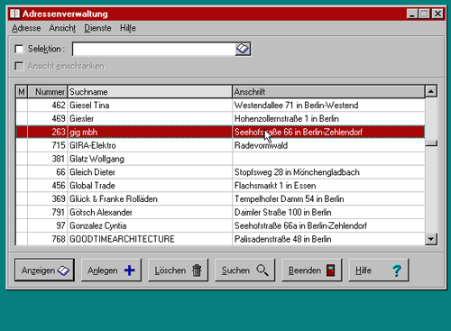 Adressenverwaltung - Hauptbildschirm