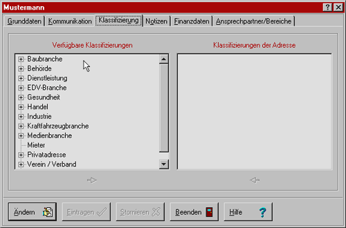 Adressenverwaltung - Klassifizierungen