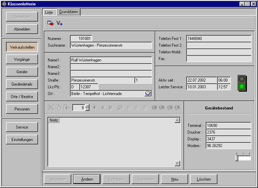 Klassenlotterie - Grunddaten Verkaufsstelle